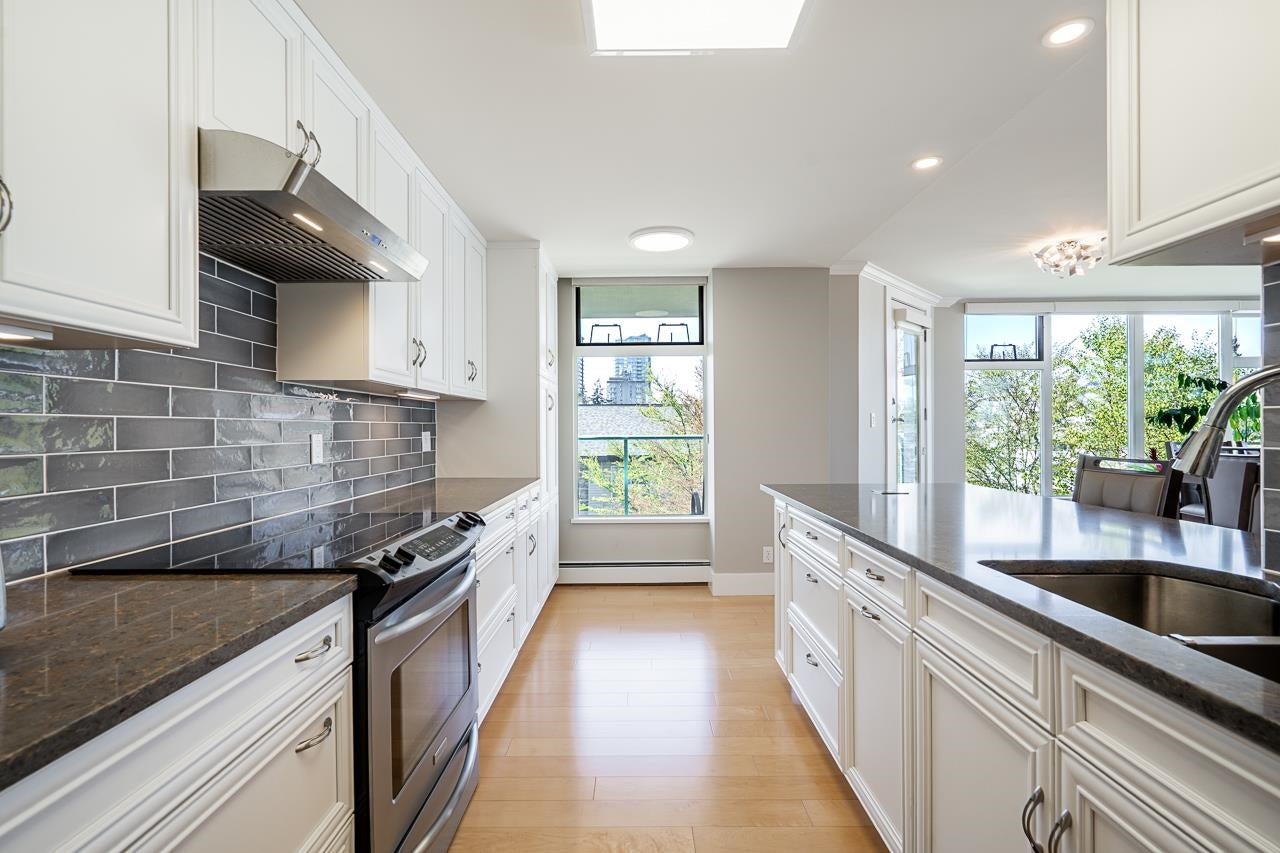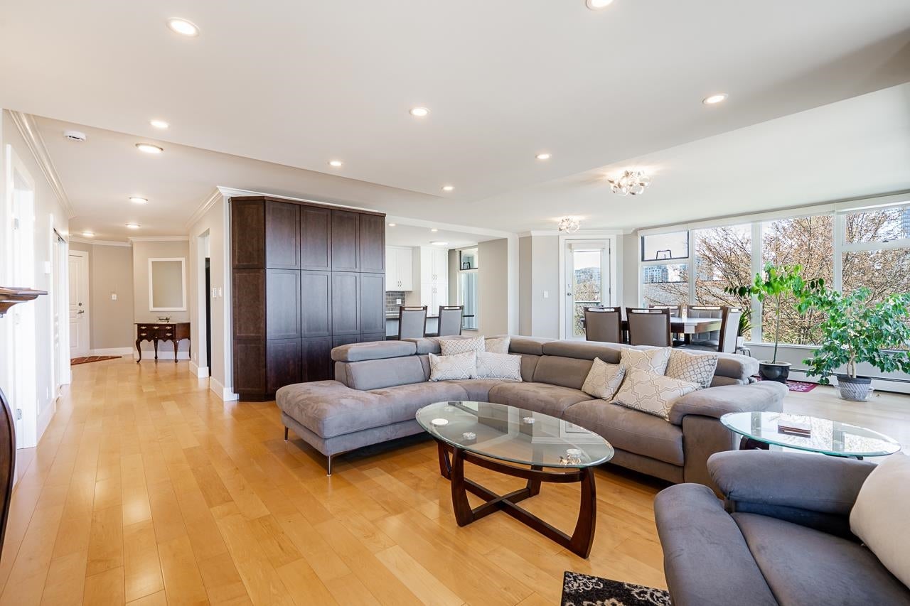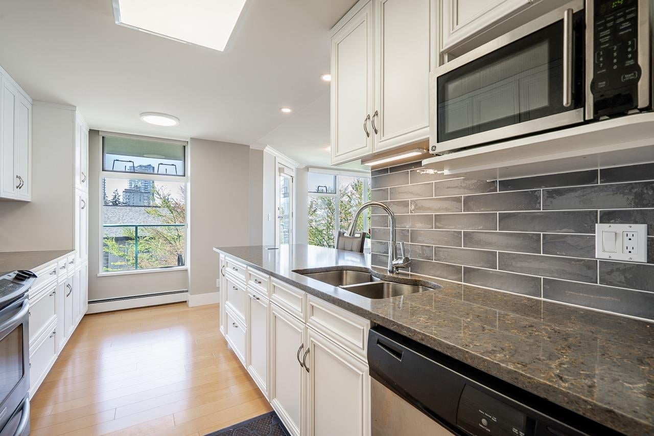 Welcome to The Summit, a solid concrete building in the heart of Uptown White Rock. This bright and spacious 1486 sqft NW corner unit offers beautiful mountain views and an abundance of natural light through its expansive wraparound windows. Enjoy outdoor living with two private balconies—perfect for BBQs or relaxing. Fully renovated from top to bottom, this home features an updated kitchen and bathrooms, a drop ceiling with modern LED lighting and dimmers, and professionally leveled hardwood floors throughout. The building is exceptionally well maintained with numerous upgrades over the years. Conveniently located just a short, level walk to White Rock Town Centre, Semiahmoo Mall, restaurants, and everyday amenities. Move-in ready—nothing to do but enjoy!